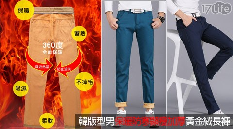 商品訊息簡述: 平均每件最低只要399元起(含運)即可購得韓版型男保暖防寒顯瘦加厚黃金絨長褲1件/2件/3件/4件/6件/8件,多色多尺寸任選。